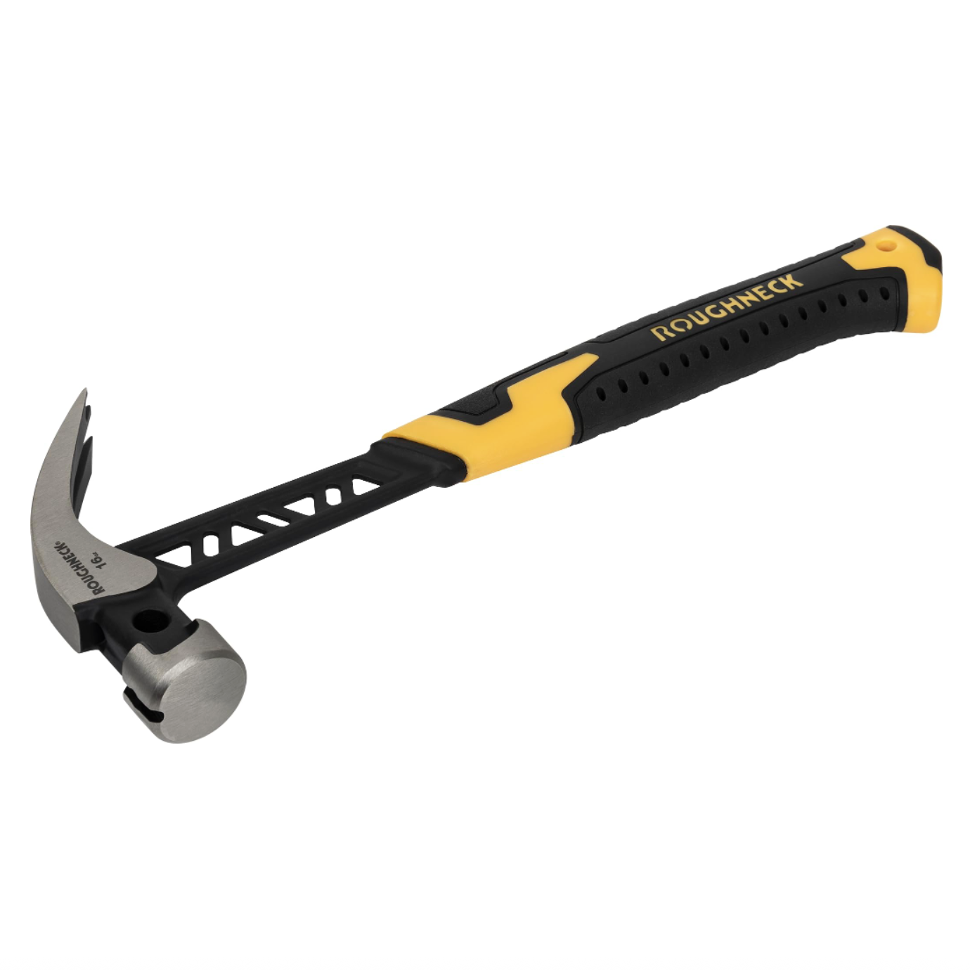 Offering increased striking power and reduced vibration, Roughneck Gorilla V-Series claw hammers are manufactured from drop forged, hardened and tempered steel. The unique V-Shock twin beam girder shaft acts as a damper resulting in reduced shock and vibration transmission and further controlled by an air cushioned grip. Reduced weight in the shaft transfers the centre of gravity towards the head resulting in improved balance and reduced effort. The magnetic nail holder makes for effortless starting particularly in hard to reach areas, whilst the mini-claw allows for embedded nails to be removed with ease. A lanyard hole in the base of the handle allows for safe and secure tethering when working at height.